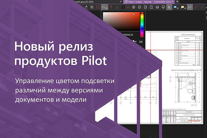 Вышел новый релиз решений Pilot для организации среды общих данных строительных проектов. Главное, что увидят пользователи — возможность менять цвет подсветки различий между версиями документа или модели. Также улучшения коснулись мобильного приложения Pilot-Photo360, которое используется для задач строительного контроля на площадке и авторского надзора за деятельностью арендаторов и собственников. Развиваются веб-редакции систем Pilot.